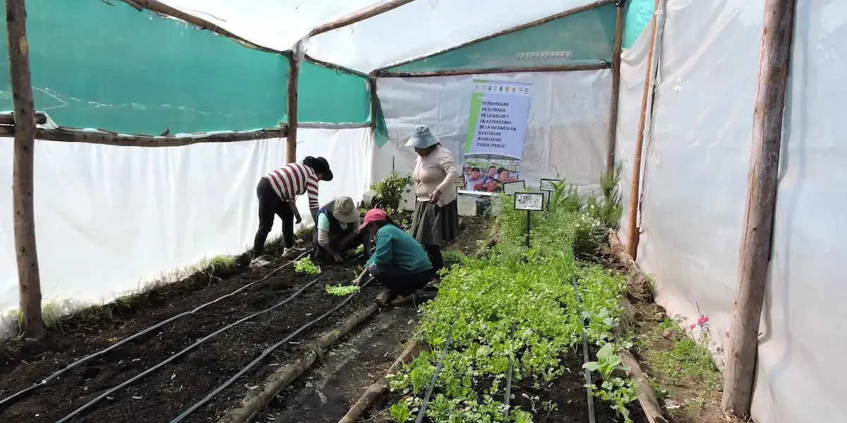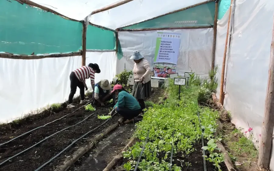 113 madres y padres de familias de 5 escuelas rurales del Cusco concluyeron la construcción de sus biohuertos con sistema de riego por goteo para garantizar una alimentación segura y saludable.
