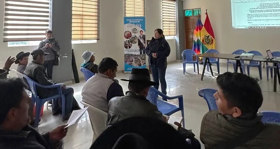 Representantes de las asociaciones de regantes y de la Dirección de Desarrollo Productivo celebraron la primera cumbre municipal en Zudáñez sobre el agua y su aprovechamiento sostenible para garantizar la seguridad alimentaria.