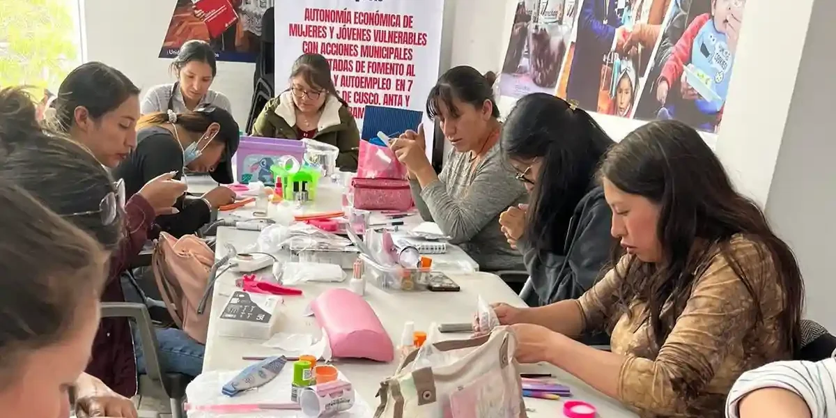 Bajo el modelo de escuelas comunitarias en oficios, un grupo de 40 mujeres jóvenes del distrito cusqueño de Wanchap participan en el curso práctico de manicure y diseño de uñas. En este marco del proyecto “Autonomía económica de mujeres y jóvenes con acciones municipales de fomento del empleo y autoempleo”, financiado por la Agencia Andaluza... Leer más