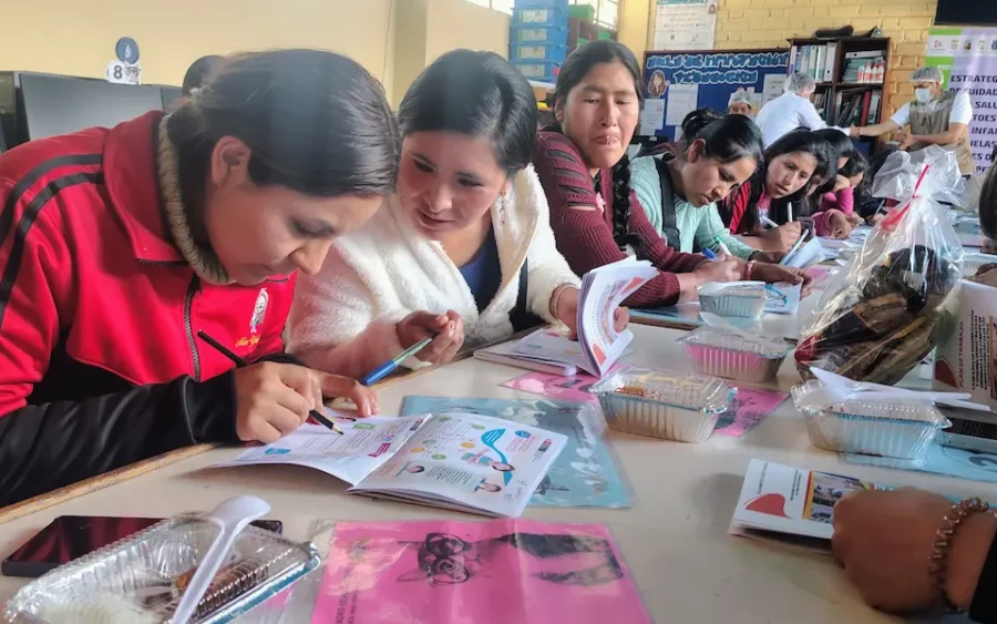 Primeras sesiones prácticas sobre preparación de refrigerios saludables en escuelas de Cusco