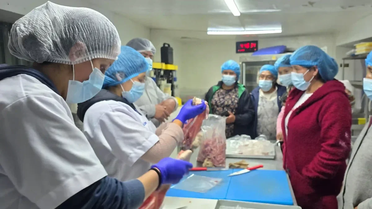 El proyecto también apostó por la generación de valor añadido y la apertura de mercados. Se implementaron cuatro centros de beneficio de pequeña escala, gestionados de forma asociativa y equipados, entre otros bienes, con peladoras, hornos y mesas de acero inoxidable, lo que permitió mejorar las condiciones sanitarias, estandarizar procesos y ofrecer un producto con mayor valor comercial. Gracias a este fortalecimiento, las asociaciones accedieron a al menos cuatro nuevos canales de comercialización y establecieron acuerdos de compra con empresas regionales como Embutidos San Juan, la Cooperativa AGROVAS y PROACOS, complementando estas ventas con su participación en ferias locales y ruedas de negocio.